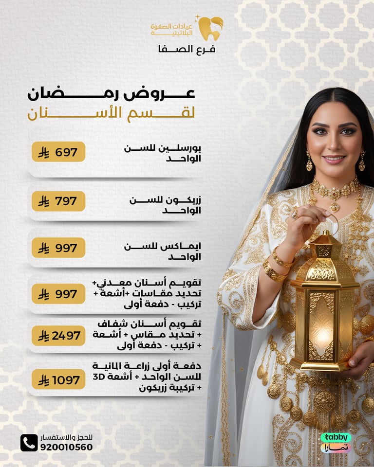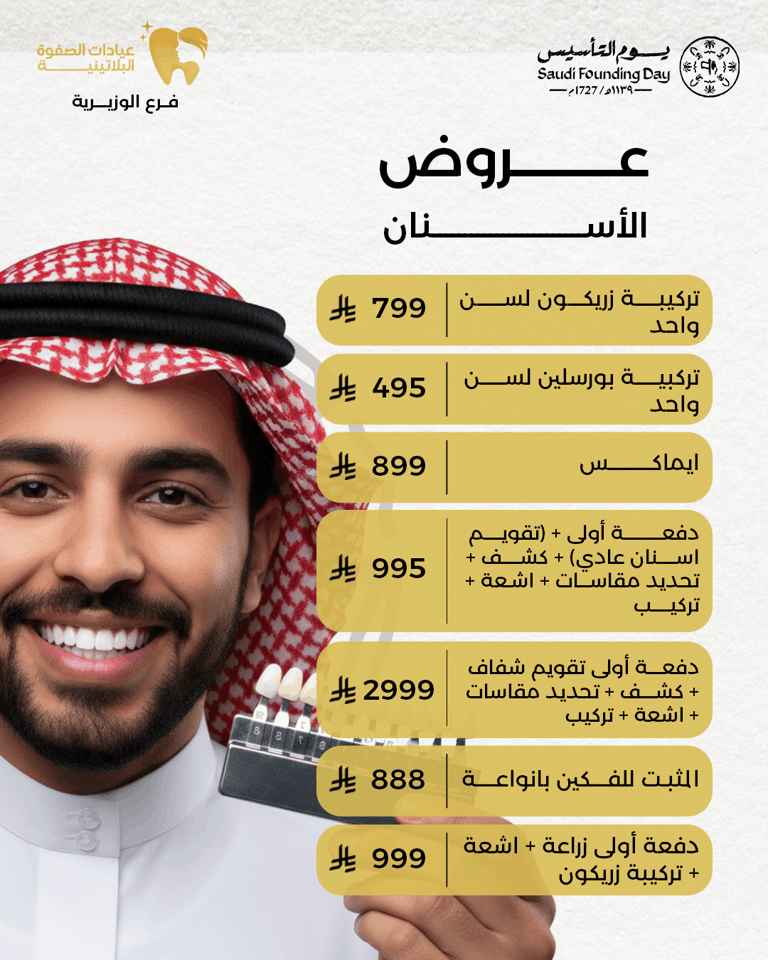 تقدم عيادات الصفوة البلاتينية خدمات متكاملة للحفاظ على صحة وجمال أسنانك.